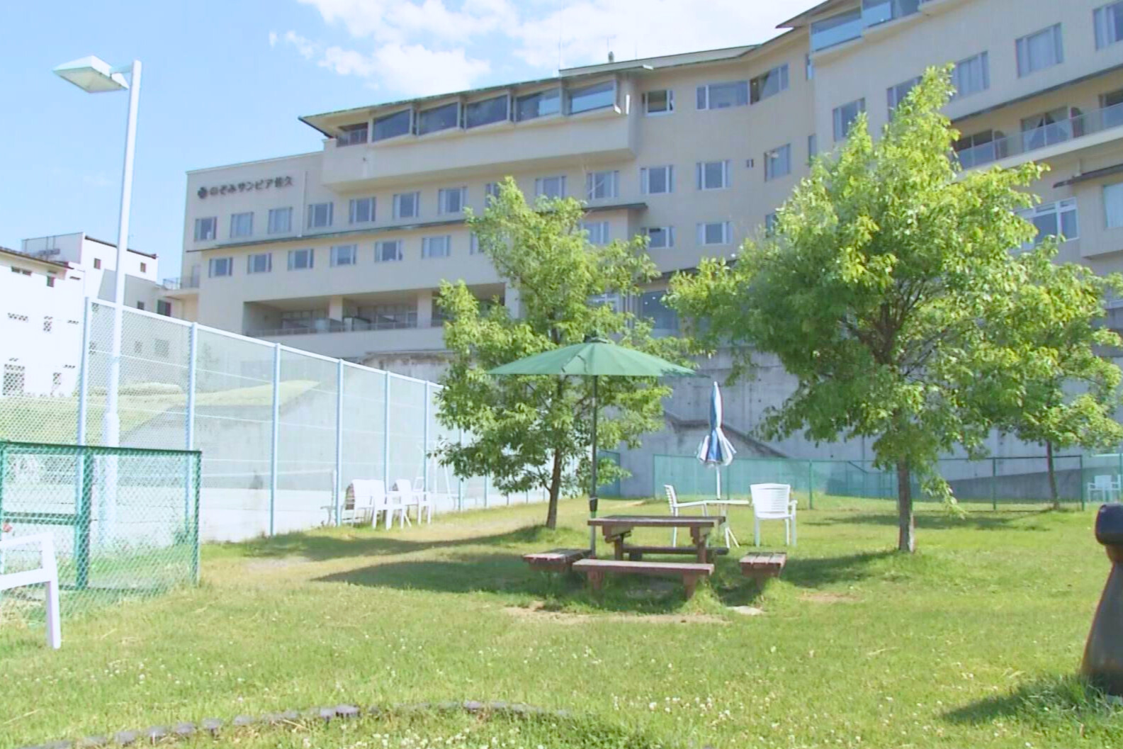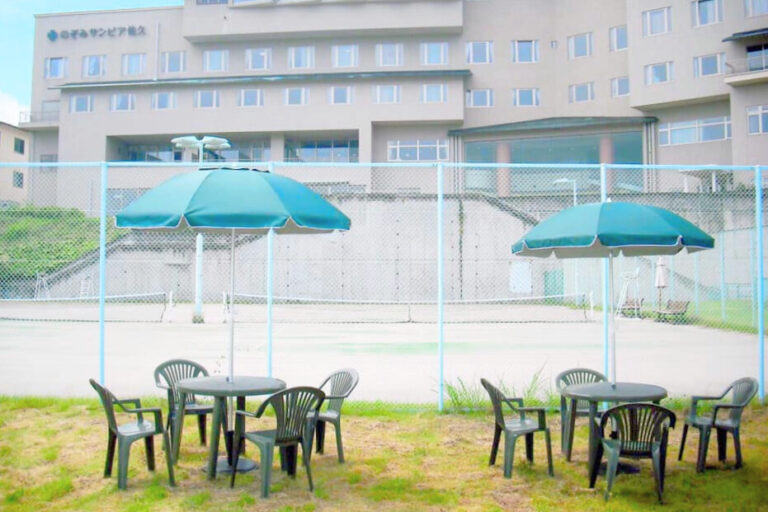 のぞみグランピング&スパ 佐久×軽井沢 詳細はこちら (ホームページ) テニスコート サンピアのテニスコートはオムニコート。一般のご利用ももちろん可能です。いい汗かいて、温泉でさっぱり、なんていかがですか。ご予約も受け付けております。テニスコートレンタル予約TEL 0267-63-3900(フロント)※夏期は非常に混み合います。早めのご予約をおすすめいたします。◎営業時間 9時〜21時(ナイター照明あり)一般利用の料金平日 1面 1,000円(税込1,100円)/時間 土曜・日曜・祝日 1面 1,500円(税込1,650円)/時間(1月1日〜3日、5月3日〜5日、お盆期間8月11日〜16日) ナイター照明 500円(税込550円)/時間用具レンタルラケット2本、テニスボール2個セット 1,000円(税込1,100円)(ラケット1本 350円(税込385円) 2本 700円(税込770円) 3本 1,050円(税込1,155円) ボール2個 300円(税込330円)) ドッグラン 清潔で広々としたドッグラン。年間を通してご利用いただけます。味処のぞみ又はBBQテラスでお食事の方は無料でご利用いただけます。◎料金わんちゃん1匹につき、登録者300円 ビジター400円 ※おひとり様2匹までドッグラン営業時間 9時~日没まで ※土日祝日のみ8時30分から営業します。パラソルを設置していますのでご利用ください。日中でも木陰は爽やかな風が吹いています。※利用規約はこちらから マレットゴルフ(道具レンタル) サンピア隣、薬草の里公園併設のマレットゴルフ場にて、佐久市発祥のスポーツ「マレットゴルフ」がプレイできます。子どもからご年配の方まで一緒に無理なく楽しめるマレットゴルフ、初体験でも充分楽しめるゲームです。マレットゴルフ場のご利用は薬草の里公園事務所にお申し出ください。サンピアで用具をレンタルしております。マレットゴルフ(道具レンタル)セット(クラブ1本・ボール1個)・・・ 200円(税込220円)クラブ1本・・・ 100円(税込110円)ボール1個・・・ 100円(税込110円)サンピアフロントまでお越しください。 ポールウォーキング(ポールレンタル) 佐久市はポールウォーキング発祥の地でもあります。サンピアには、高品質のウォーキングポールを佐久市で作っている「シナノ」のウォーキングポールのレンタルがございます。また、サンピアは「ポールウォーキングステーション」となっており、周辺の里山をウォーキングしていただけます。ポールウォーキングを楽しんだあと、さんぴあ温泉で汗を流して、レストランでお食事・・そんな過ごし方をご提案いたします。ポールレンタル(シナノ製)ポール1組(1回)・・・ 300円(税込330円)サンピアフロントにお申し出ください。