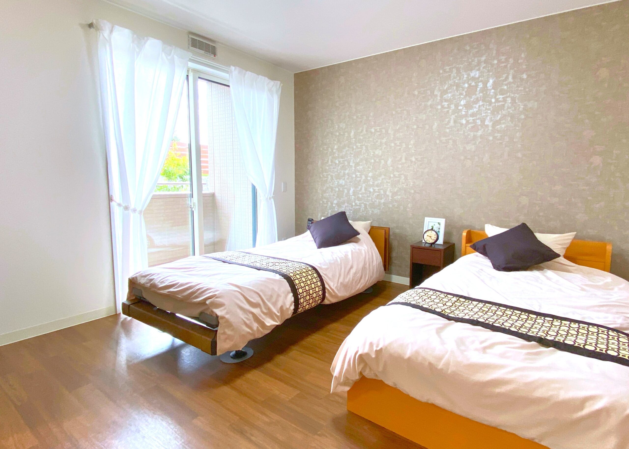 - 夜間はスタッフの代わりに、セコムの人感センサーと安心フォンにより、安心して生活ができます。