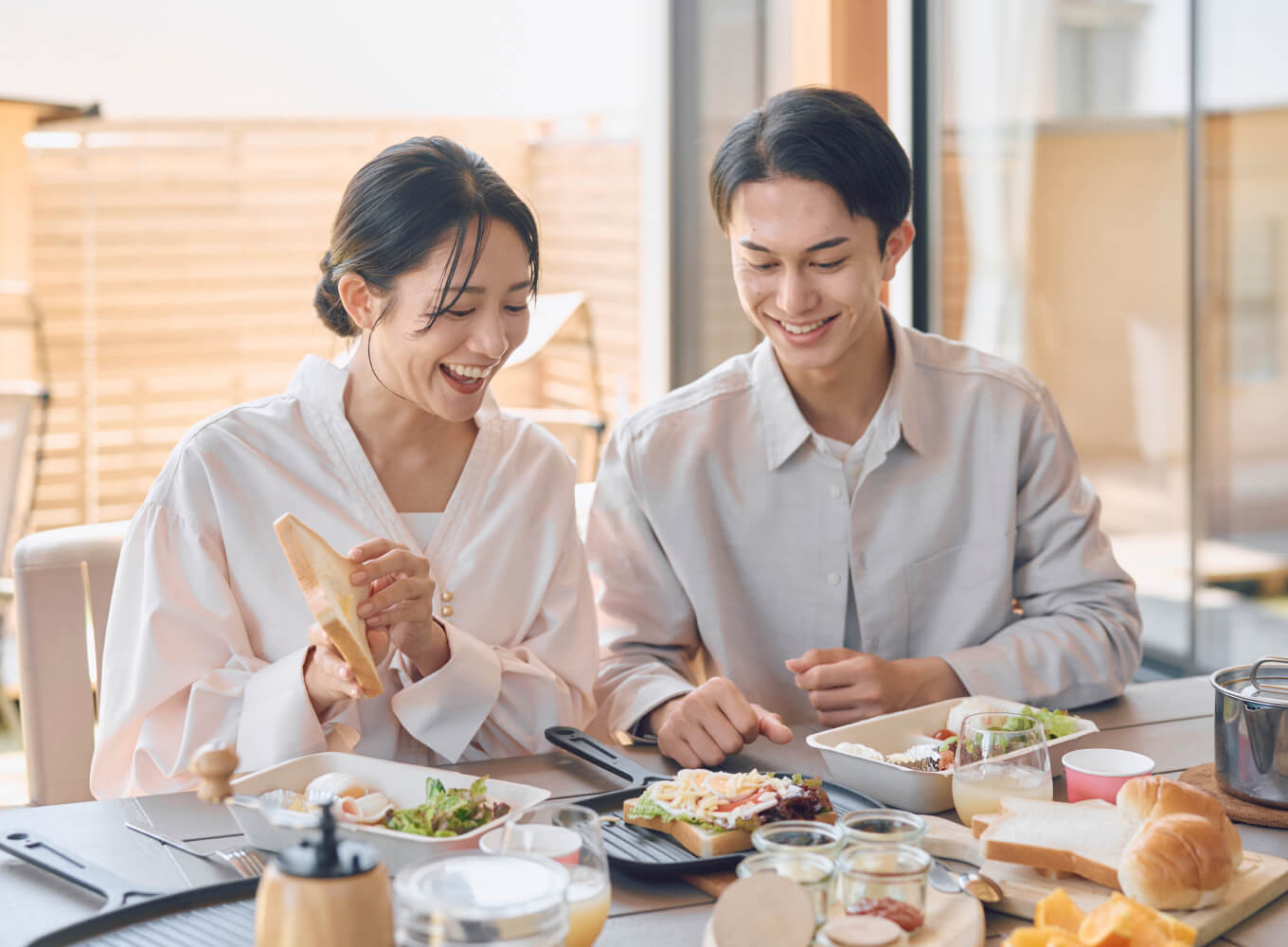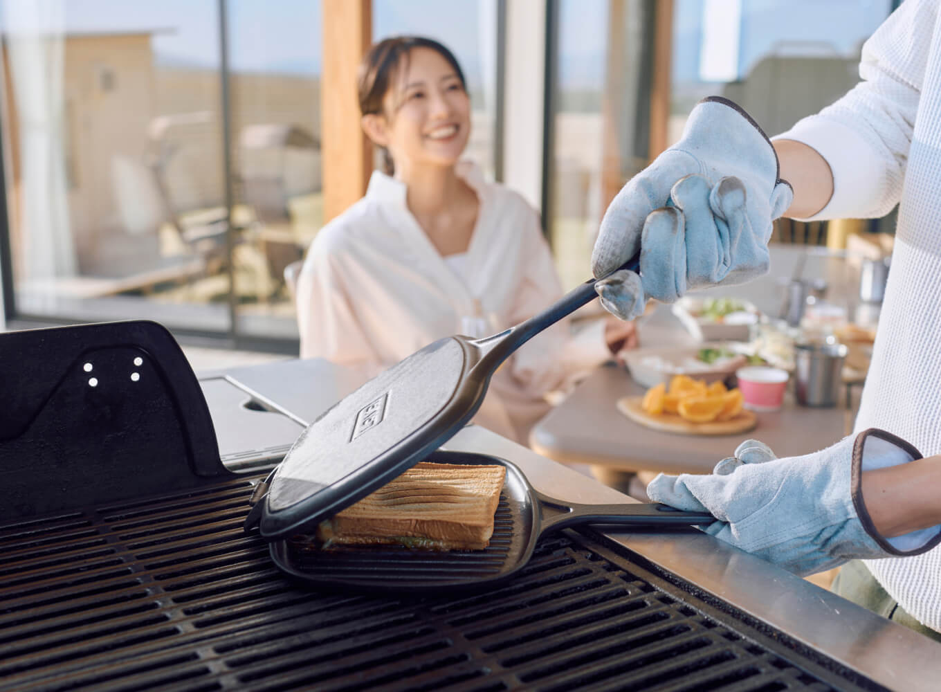 朝日で自然に目覚める気持ちのいい朝。 深呼吸をすれば空気の新鮮さに驚くことでしょう。挽きたての珈琲とともに、ホットサンドや旬のフルーツのご朝食をお楽しみください。