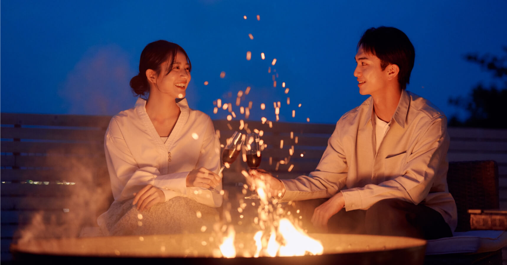 焚き火の神秘的なオレンジ色の炎。パチパチと不規則に流れる木が燃える音は心地良く、不思議な安心感を与えてくれます。大切な人とお酒を飲みながら語り合う特別な時間をお楽しみください。