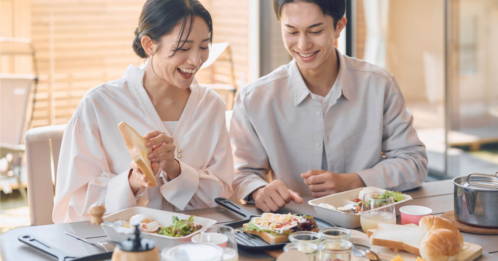 朝日で自然に目覚める気持ちのいい朝。深呼吸をすれば空気の新鮮さに驚くことでしょう。挽きたての珈琲とともに、ホットサンドや旬のフルーツのご朝食をお楽しみください。